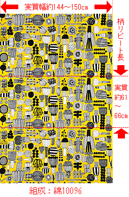 【2190円以上でメール便送料無料】 マリメッコ 生地 10cm単位 切り売り ヴィキルース ヴィヒキルース marimekko VIHKIRUUSU イエロー ウェディングローズ バラ 薔薇 布 北欧 生地 おしゃれ かわいい ファブリック 入園 入学 マスク 布マスク